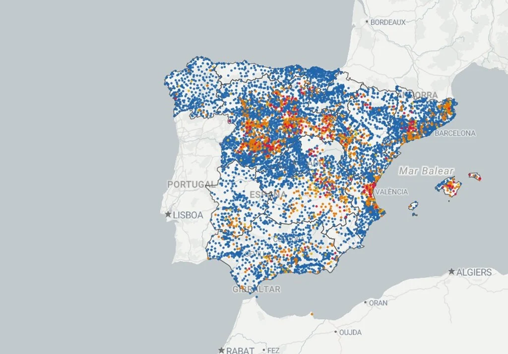 Beyond individual municipality searches, "El agua de tu pueblo" offers a comprehensive national perspective on tap water quality. The homepage features an interactive map, powered by OpenStreetMap, adorned with color-coded points that visually depict water quality across Spain. This macro-level view provides an immediate understanding of where regulations are met and where potential areas of concern exist.